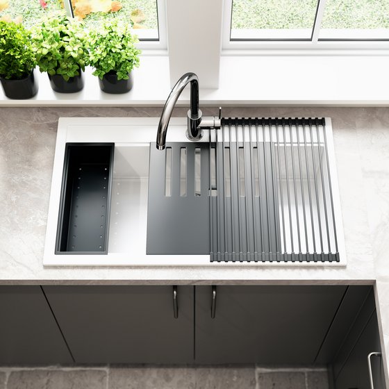 Cet évier maxi cuve semi-professionnel, fourni avec de nombreux accessoires, vous permet de cuisiner et remettre en ordre votre plan de travail en un rien de temps! Vous ne pourrez plus vous en passer.