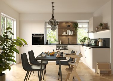 Une cuisine en L exploite mieux les angles et offre un plan de travail plus généreux pour les familles, tandis qu'une implantation en U enveloppe l'utilisateur et multiplie les zones fonctionnelles dans un espace plus grand.