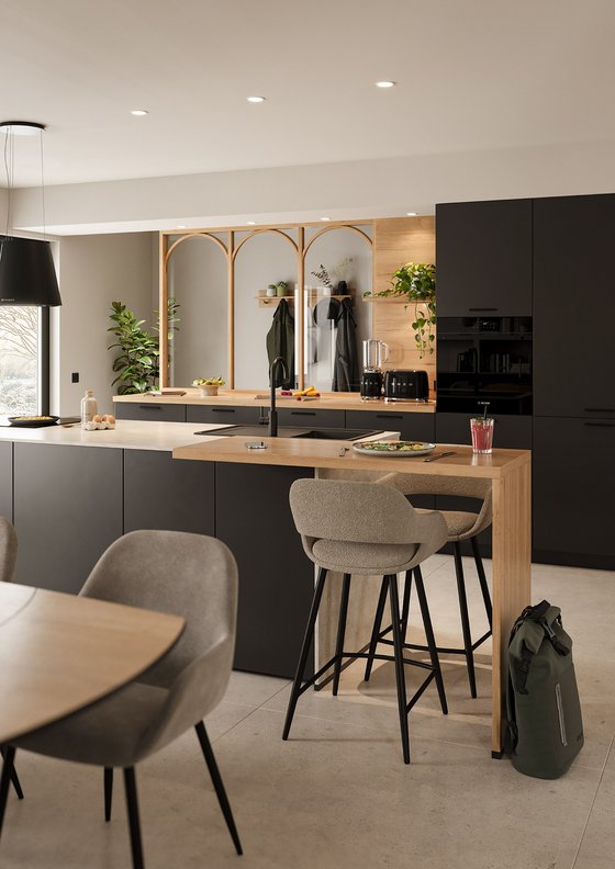 Pensée pour ceux qui vivent intensément chaque moment, la cuisine Dolce Chic incarne le parfait équilibre entre design affirmé et fonctionnalité du quotidien. Avec ses façades noires, profondes et raffinées, elle s’intègre harmonieusement dans les intérieurs modernes et épurés, offrant un espace aussi esthétique que chaleureux.