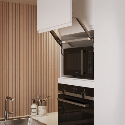 Dissimulé derrière ses portes lift, il excelle aux parties de cache-cache et réchauffe tous les plats à la demande !