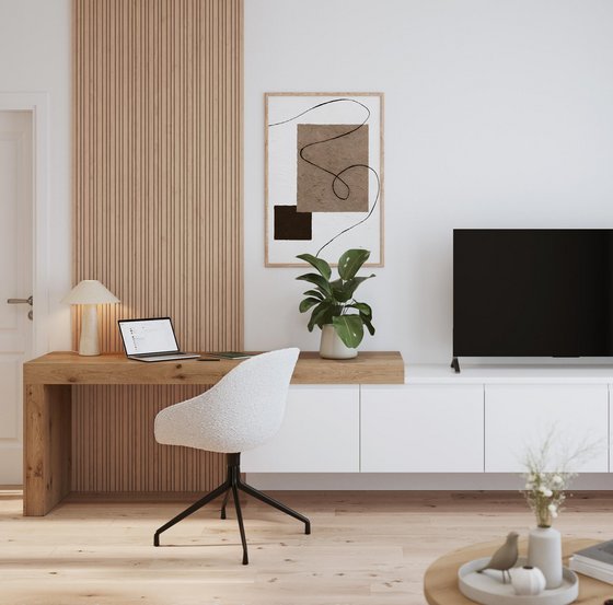 - Le coin bureau, discret mais efficace, idéalement aménagé dans une niche ou une pièce multifonction.