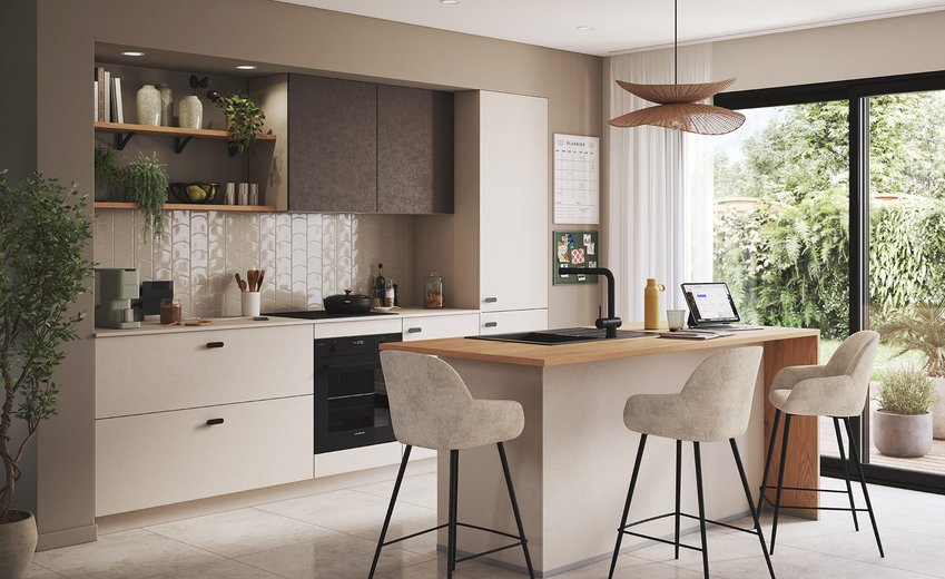 Pour une cuisine harmonieuse, il est essentiel d'associer judicieusement les matériaux de la crédence et du plan de travail, pour former un ensemble cohérent, avec un style affirmé. Si vous optez pour un plan de travail en bois, une crédence en céramique ou en verre apportera un contraste intéressant avec une touche subtile de modernité. Si vous avez envie d’un plan de travail en pierre naturelle, choisissez une crédence en inox ou en verre pour accentuer le côté raffiné et contemporain. Les plans de travail en stratifié se marient bien avec des crédences en stratifié car ils créent une continuité visuelle. L'objectif est de trouver l'équilibre parfait entre style et fonctionnalité : nos plans en 3D vous aideront à vous projeter, comme si vous étiez déjà dans votre future cuisine ! Découvrez aussi le revêtement mural pour votre crédence de cuisine.