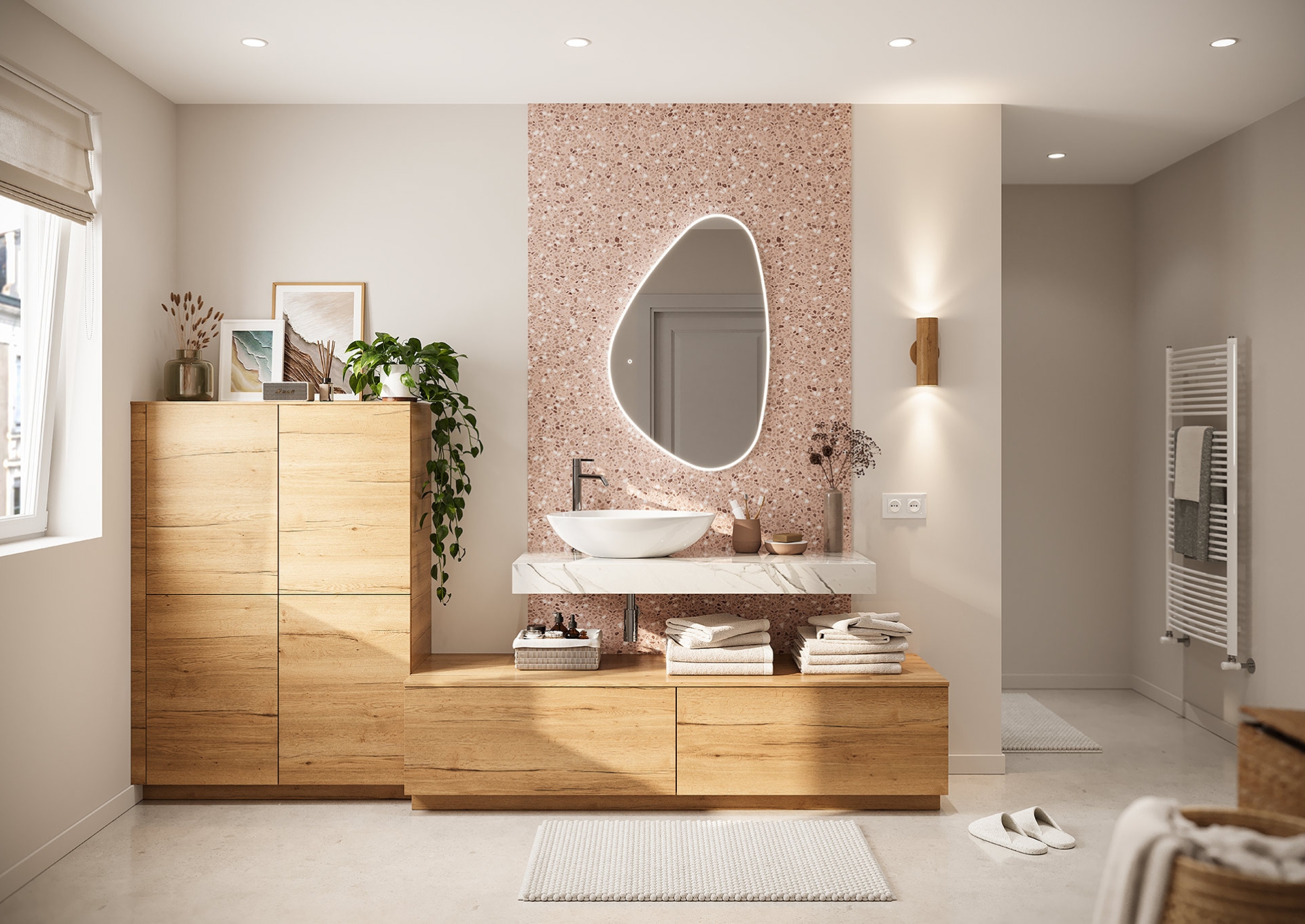 L'espace disponible dans votre salle de bains est un facteur déterminant. Prévoyez bien en amont vos besoins de rangement, pour les serviettes, les produits de toilette ou les accessoires de beauté : chaque chose à sa place ! Une planification intelligente des rangements est la garantie d’une salle de bains propre et bien organisée.