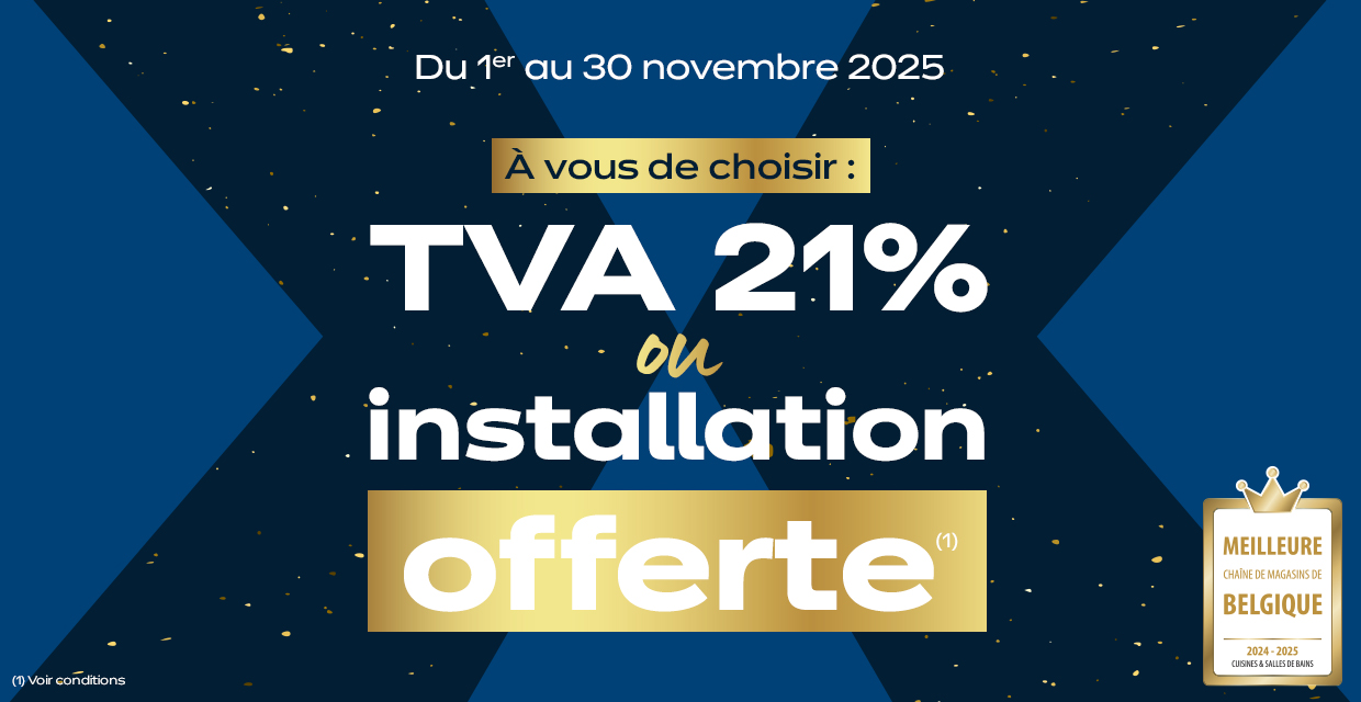 La TVA à 21% offerte sur vos meubles OU l'installation offerte, pour une tranquillité totale (1)