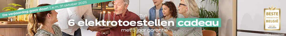 * Condities: Aanbieding « Tot 6 elektro-toestellen cadeau met 5 jaar garantie » verlengd van 01/10/2025 tot 31/10/2025 bij aankoop van een uitgeruste keuken vanaf 2.850€ btw incl. aan keukenmeubelen (uitgezonderd accessoires, elektrotoestellen, sanitair, levering en plaatsing) in een ixina-verdeler in België. Tot 6 elektro-toestellen cadeau op een selectie gepresenteerd door jouw winkel, onder de volgende voorwaarden :