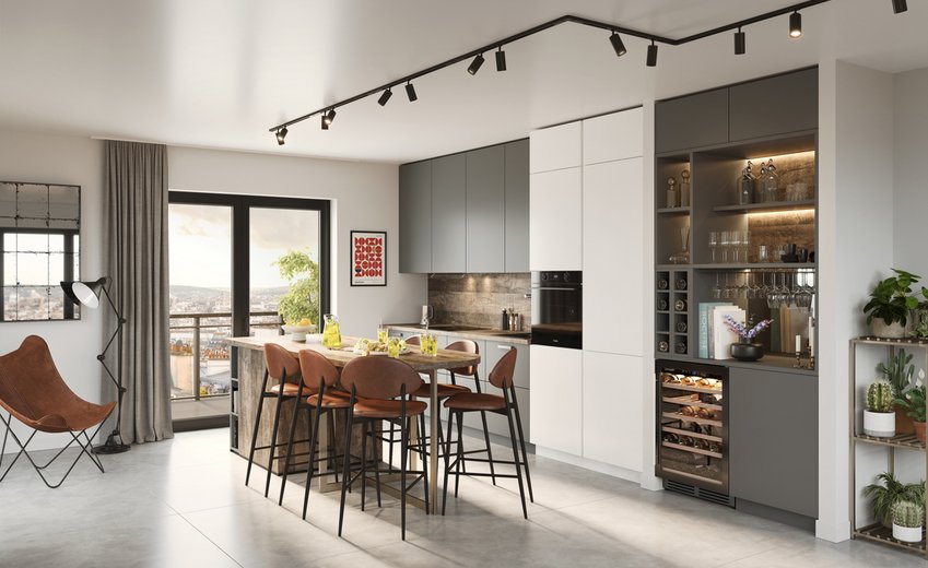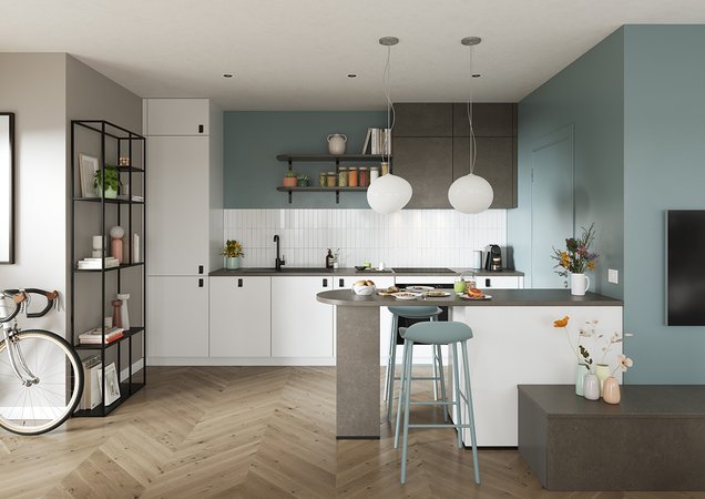 Goede ventilatie, slimme opbergruimte en een vloeiende materiaalovergang zorgen voor een perfecte integratie met de rest van je leefruimte.