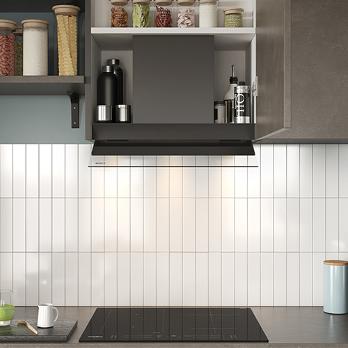 Zwarte industriële hanglampen, LED-verlichting onder de kasten of een inox dampkap kunnen op zich al echte decoratieve elementen worden. Onze modellen tonen perfect hoe esthetiek en functionaliteit hand in hand kunnen gaan. Met een paar groene planten breng je extra frisheid en dynamiek in de ruimte.