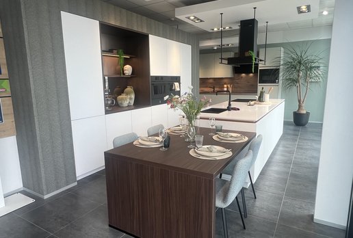 Bij ixina Oostende stellen we onze expertise en passie ten dienste van jouw keukenproject. Onze winkel is gelegen aan de Torhoutsesteenweg 600, 8400 Oostende. Onze keukenontwerpers staan van maandag tot zaterdag van 09:30 tot 18 uur klaar om je te helpen je ideeën om te zetten in realiteit en je gepersonaliseerde oplossingen aan te bieden. Je kan ons bereiken op 059 33 99 20 voor meer informatie of om een afspraak te maken. Onze tarieven zijn transparant en afgestemd op je budget, zodat je kunt profiteren van kwaliteitsadvies tegen concurrerende prijzen. Of het nu gaat om een eenvoudige renovatie of een compleet nieuwe keuken, ons team staat klaar om je bij elke stap te begeleiden.