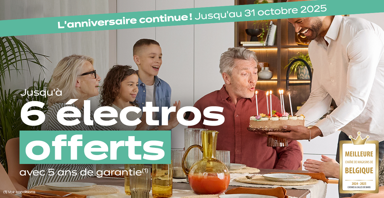 Jusqu’à 6 électros offerts à l’achat de votre nouvelle cuisine.(1)